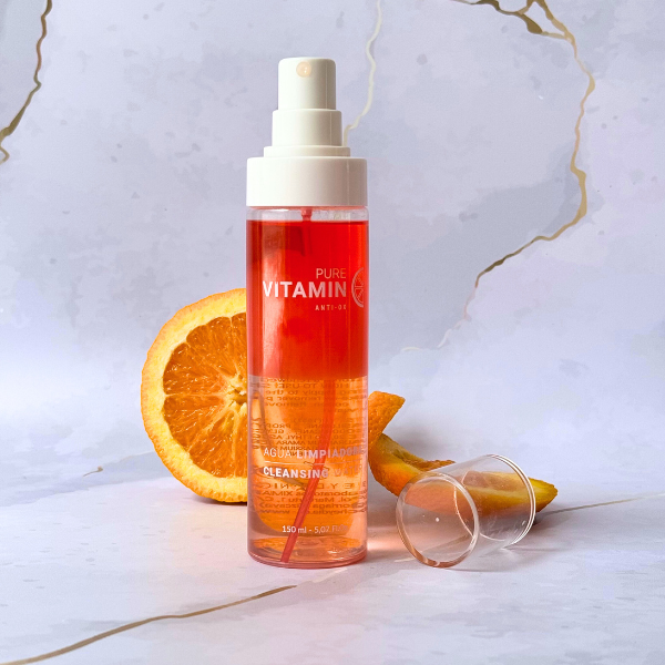 • Start by cleansing your face with the Noche Vitamin C Cleansing Water.